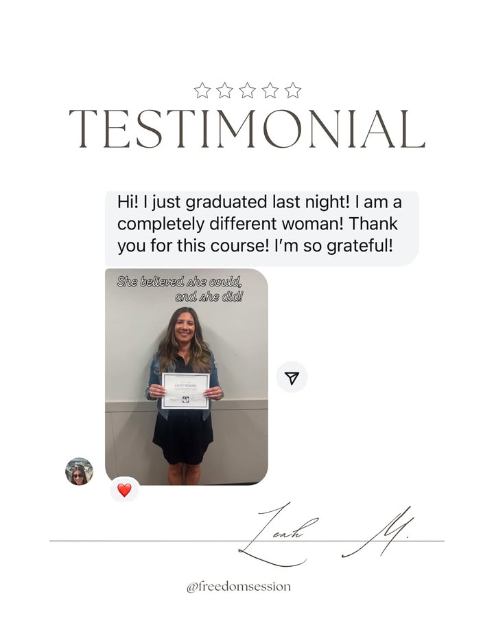 Leah showed up, did the work, and trusted the process — and the Holy Spirit met her there. 🙌 30 weeks. Countless workbook entries. A heart surrendered and fully committed. As she walked the journey through Freedom Session and Authentic Living, healing came step by step — through homework, honest reflection, and God’s transforming presence. 💬✨ We love hearing stories like this. 📩 If Freedom Session has impacted your life, please share your testimony with us! We’d love to hear it! Send it to socialmedia@freedomsession.com — your story might be the encouragement someone else is waiting for. #FreedomSession #HealingJourney #AuthenticLiving #TestimonyTuesday #JesusHeals #DiscipleshipJourney #RealHealingRealHope (fb)