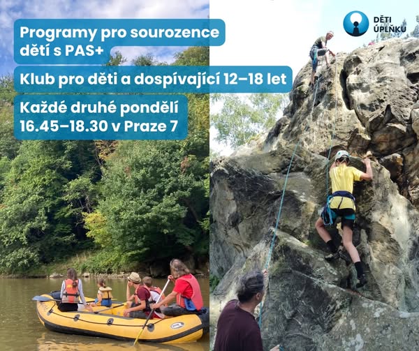 👥 Programy pro sourozence dětí s PAS+ vytváří bezpečný prostor pro sdílení pocitů, otevřenost a pochopení, ale také pro zábavu, dobrodružství a nová kamarádství. 👉 Ještě máme volná místa v Klubu pro děti 12–18 let. Klub bude v pondělí jednou za dva týdny, vždy 16.45–18.30. 👉 Více na detiuplnku.cz/programy-pro-sourozence/ Sourozenci dětí s autismem a náročným chováním často vyrůstají ve světě, kde se mnohé točí kolem potřeb jejich sourozence – a na ty jejich nezbývá prostor. Žijí ve stínu péče, která pohlcuje pozornost a síly celé rodiny. Naše programy jim pomáhají mluvit o vlastních pocitech, najít pochopení a zažít přijetí mezi vrstevníky v podobné situaci. Umožňují jim také zažít zábavu, odreagování a dobrodružství. 👉 Více na detiuplnku.cz/programy-pro-sourozence/ ➡️ Nebo se ozvěte koordinátorce Nele: nela.cenkova@detiuplnku.cz (fb)