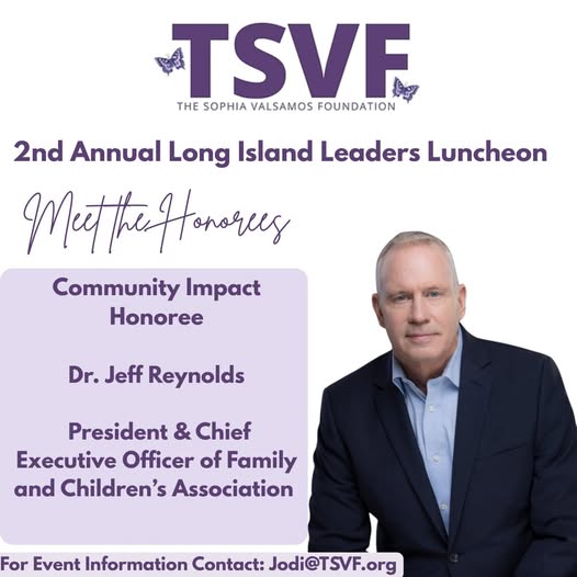 We are proud to announce Dr. Jeffrey Reynolds, President & CEO of Family & Children's Association (FCA), as an honoree at The Sophia Valsamos Foundation’s 2nd Annual Leadership Luncheon on October 9, 2025! As the leader of one of Long Island’s largest and most impactful health and human service organizations, Dr. Reynolds has transformed lives, serving over 35,000 individuals annually across all ages with critical programs in addiction prevention, recovery, mental health, and family support. Since joining FCA, Dr. Reynolds has secured more than $18 million in new funding, expanded access to care with the launch of THRIVE Recovery Centers and a Certified Recovery Peer Advocate program, and established a Certified Community Behavioral Health Clinic in Nassau County with federal funding from SAMHSA. His leadership has positioned FCA at the forefront of behavioral health innovation, while his policy advocacy has helped shape conversations around mental health, addiction, gaming, cannabis, and human trafficking at both local and national levels. A two-time cancer survivor, Ironman triathlete, and author of Every Mile Matters, Dr. Reynolds brings passion, endurance, and purpose to every mile professionally and personally. We are honored to celebrate his leadership and unwavering dedication to Long Island’s most vulnerable. To learn more about the 2nd Annual Long Island Leadership Luncheon please contact Jodi@TSVF.org. Thank you. #TSVF #EmotionalHealth #Leadership #FCA #Honoree #LongIsland #DrJeffReynolds (fb)