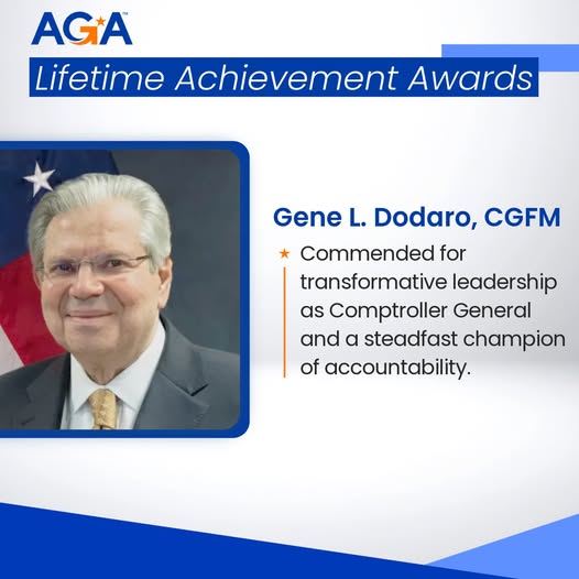 🌟 Lifetime Achievement Award Honoree: Gene L. Dodaro, CGFM As Comptroller General of the United States, Gene Dodaro has strengthened government efficiency, transparency and public trust. Leading GAO with vision and integrity, he provided Congress and citizens with independent, fact-based insights that improved government performance. A champion of the CGFM and professional excellence, Gene leaves an indelible mark on both AGA and the nation. (fb)