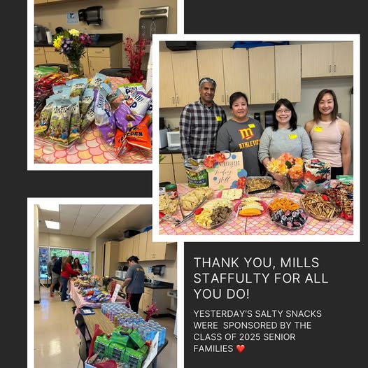 …and it’s a wrap! The Senior Class of 2025 Families hosted yesterday’s Salty Snack Bar for Mills Faculty and Staff. We are truly grateful for ALL you do for our students every day. Families - thank you ALL for helping out. You are all amazing. (fb)