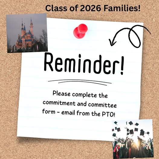 Class of 2026 Families - you have Mail! Please check your junk folder for a PTO email. If your child is/is not participating in Grad Nite - we need to know! And, we want to do something special (like a Senior Family Dinner) so please volunteer for a committee. Link in bio! (fb)