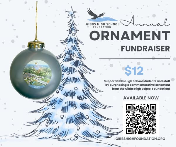 They're here! The 2025 Annual Gibbs Foundation Ornament is now available for purchase. This year's ornament features a beautiful aerial shot of Gibbs High School campus by Austin Angel Photos + Films LLC, and everybody's favorite retro Gibbs strutting eagle logo on a silver shatterproof ornament. Get yours now before they sell out: https://gibbshsfoundation.givebacks.com/shop/items/edbadfbf4e All proceeds benefit the students & staff of Gibbs High School! (fb)