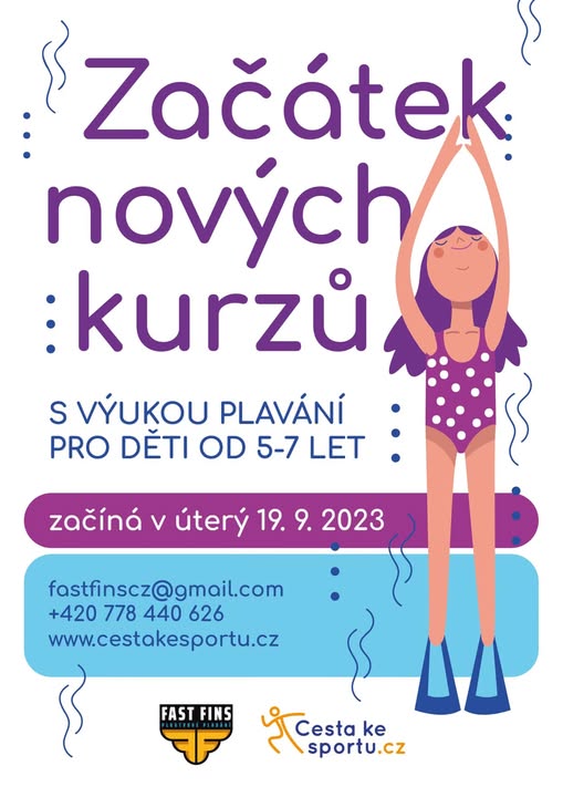 NOVINKA. Vážení rodiče, Opět Vám dáváme možnosti přihlásit Vaše děti do kurzu plavání pořádané spolkem CESTA KE SPORTU, z. s. Bližší informace najdete v záložce nabídka kurzů.