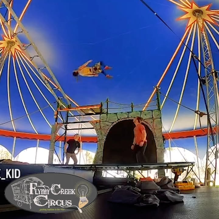 Behind the Scenes at the Flynn Creek Circus getting ready for 'The Bridge' opening this June follow us @flynncreekcircus @mitch.the.human @sqwid_the_kid @jacy_circ @bigshemshow #russianswing #trampwall #skywalking #comediadelarte (fb)