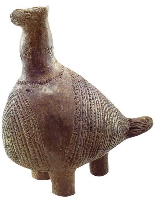 History Lesson on Croatia: The Vučedol Dove In addition to arsenic bronze objects, the Vučedol are known also for their ceramics. The most famous of these is an object known as the Vučedol Dove. This artifact was discovered in 1938 by an archaeologist (one source claims that this was a German archaeologist by the name of R. R. Schmidt, whilst another asserts that the archaeologist was named M. Seper) who was excavating Vučedol. The Vučedol Dove is about 49.5 cm (19.49 inches) in height, and has been identified as a ritual pot made out of baked clay. There are numerous markings on this piece of ceramic. On its neck, for example, symbols of axes and a necklace can be found. In addition, the wings and chest of this bird are also covered by a distinct set of patterns. Based on these patterns, along with the bird’s crest, this is actually a representation of a domestic pigeon, rather than a dove. Another interpretation suggests that the dove is in fact a partridge, and was meant to represent a particular blacksmith / blacksmiths of the Vučedol culture in general. This interpretation considers the fact that the blacksmiths of the Vučedol culture were exposed to arsenic whilst manufacturing the arsenic bronze objects. (fb)