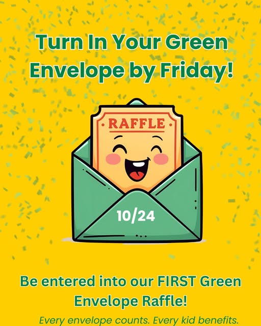 I know your children are all excited about the Green Envelope Raffle! Don’t forget — to be entered into the first Green Envelope Raffle, turn in your envelope (or complete your online form) by this Friday! 📬✨ ✅ Every returned envelope counts — no matter the amount! 🎟️ Each one = 1 raffle entry 🎁 Prizes include Gator gear, pizza parties, and more! Let’s hit our first milestone together — your support keeps Gatewood’s amazing programs running strong! 💚💛 Every envelope counts. Every kid benefits. 🌿 https://docs.google.com/forms/d/e/1FAIpQLSfIUOpI6KOfvcT6jWCm341Jq1l__-LguWgQitiTaDgCKxPRWw/viewform #GoGreenForGatewood #GatewoodPTA #GreenEnvelope2025 #EveryEnvelopeCounts #GatewoodGators #SupportGatewood #PTAFundraiser #RaffleReminder (fb)