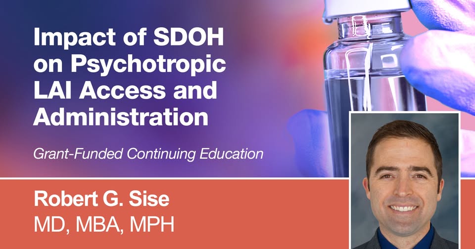 Join Dr. Robert G. Sise, MD, MBA, MPH for this webinar: Impact of Social Determinants of Health on Psychotropic Long-Acting Injectable Access and Administration. Get ready to advocate for your patients! #CE #psychpharmacy #SDOH #LAI #virtual aapp.fyi/hb1 (fb)