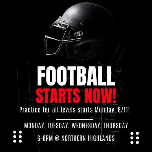 It’s football time! Last call to register for football & cheer - registration closes at midnight tonight! Football practice starts tomorrow, at Northern Highlands. Monday - Thursday, 6-8pm. (fb)