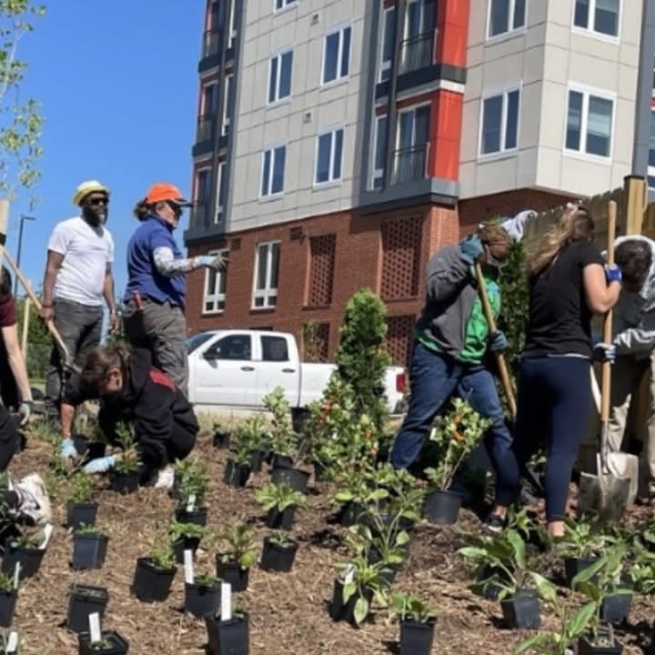 Habitat for Humanity Metro Maryland teamed up with Montgomery County Maryland last weekend as volunteers worked alongside residents of Allium Place, an affordable housing community, to create RainScapes conservation gardens covering over 1,000 square feet and root five shade trees. "I’ve always believed that affordable housing and environmental sustainability don’t have to be separate goals; they can go hand in hand," said county executive Marc Elrich. Full story from Hoodline. (fb)