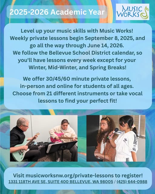 Visit the link in our bio for more information and registration 🎤🎸🎹🎻🎺 • • • • • • • #musicworksnw #lessons #pnw #bellevue #seattle #privatelessons #vocal #instrument #musiceducation #guitar #piano (fb)