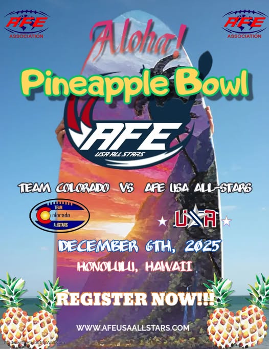 ATTENTION!!!!! THE TIME HAS COME... REGISTRATION IS NOW OPEN for the PINEAPPLE BOWL Men's Event in HONOLULU, HAWAII. December 2nd -7th, 2025. Once YOU have completed your registration, if YOU are selected you will be sent an OFFICIAL invite. You will be responsible to PAY the DEPOSIT immediately to be added to the roster. DO NOT drag your FEET or you will be left behind. REGISTRATION will close on June 30th. https://www.afeusaallstars.com/event-registration/men/ (fb)