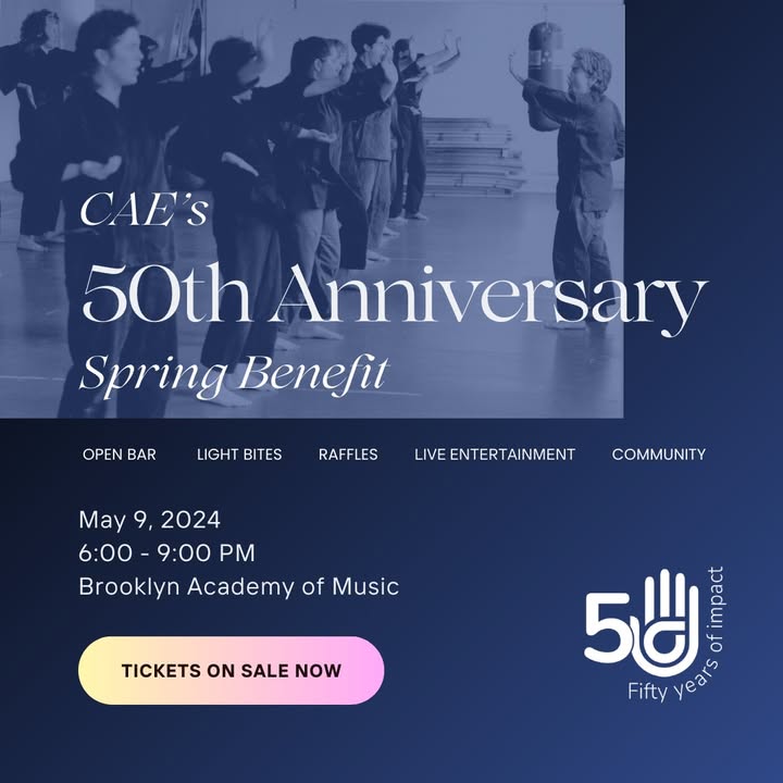 CAE is celebrating our 50th Anniversary on May 9th, and we hope you’ll join us at the Brooklyn Academy of Music to honor the New Yorkers who made us who we are today – and usher in a new era of community care. CAE is excited to announce we will be honoring Annie Ellman, our co-founder and former Executive Director, for her long-standing commitment to a safer world for all. Discounted Early Bird Tickets are on sale now: https://bit.ly/CAE50tix Over the last five decades, the Center for Anti-Violence Education has empowered tens of thousands of New Yorkers to prevent, disrupt, and heal from violence in our communities. We were founded as Brooklyn Women’s Martial Arts in 1974 by Annie Ellman and Nadia Telsey, two radical feminist lesbian martial artists. Without a permanent location, they held self-defense workshops in living rooms, rental spaces, street fairs, and rallies. Beginning with a core of self-defense for women, CAE soon branched out to working with young people to prevent violence and address the intersections of different forms of oppression. Our founders organized support for Black women prosecuted for fighting back against attackers. To this day, our programming centers the experiences of people most targeted by sexual, gender, and hate-based violence. In 2023, we served more than 4,000 New Yorkers across all five boroughs. This year, we are collaborating with vulnerable New Yorkers – especially those from migrant, queer, and Black and Brown communities – to rise up against the tidal wave of hate violence threatening all of us. Joining us at our Spring Benefit will keep making this work possible. (fb)