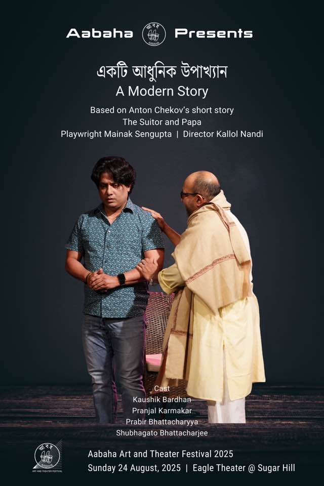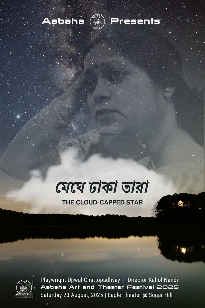 🎭 Premiere Presentation মেঘে ঢাকা তারা Meghe Dhaka Tara – The Cloud-Capped Star Aabaha proudly presents the premiere of Meghe Dhaka Tara at the Aabaha Art and Theater Festival 2025 📍 The Eagle Theatre @ Sugar Hill 🗓 Saturday, August 23, 2025 Originally penned by celebrated playwright Ujjwal Chattopadhyay, this evocative drama is brought to life under the direction of Kallol Nandi. Inspired by the timeless legacy of Ritwik Ghatak, the play explores themes of identity, sacrifice, and resilience in the face of societal and familial pressures. Cast Akashlina Sayad, Amartya Samadder, Anirban Ghosh, Kaushik Datta, Mahuya Mandal, Sarbani Samadder, Subhadeep Ghosh, and Members of Aabaha Lighting Design Ambarish Mitra 📸 Photo Courtesy Abhijeet Hazra & Amartya Samadder Join us for this poignant and powerful theatrical experience as Aabaha reimagines a modern classic for a new stage and audience. (fb)