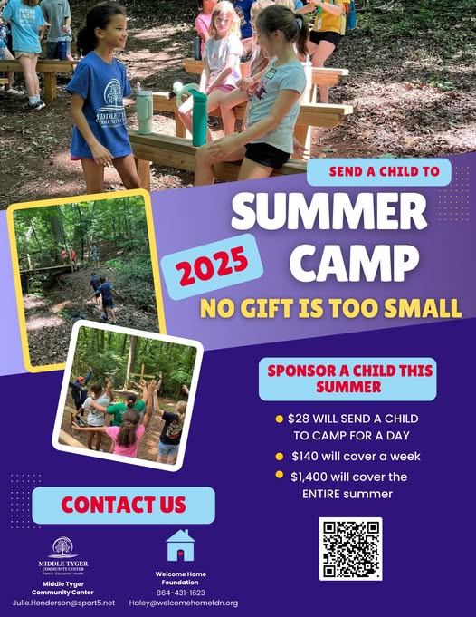 Help make this summer unforgettable! Join us in supporting those in kinship or foster care to give kids the chance to experience adventure, friendship, and fun at camp! Partner with Welcome Home Foundation and Middle Tyger Community Center by making your donation today. Donate now via the link below or through Venmo: @welcomehomefoundation https://www.welcomehomefdn.org/one-time-donation (fb)