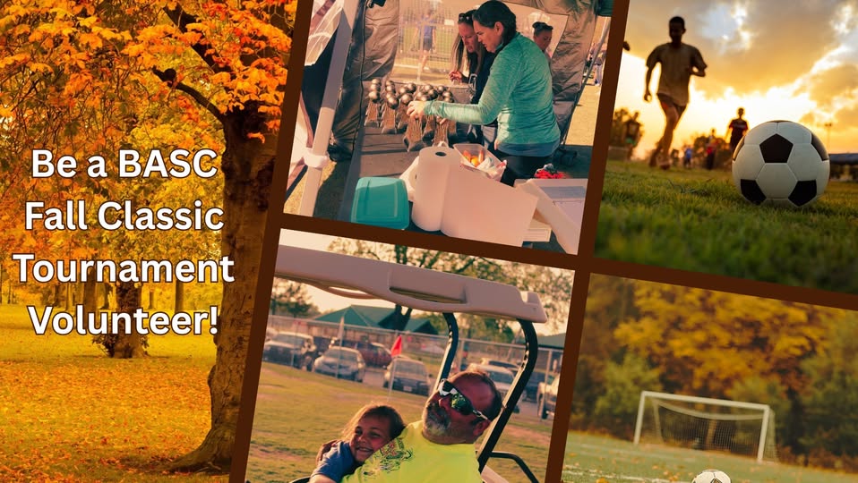 🍂⚽ Fall into Volunteering! 🍂 👉 Sign up today: https://basoccer.club/tournaments/volunteer-at-basc-tournament/ The BASC Fall Classic is coming soon, and we need amazing volunteers to help make this tournament one to remember! 🍁 Short shifts 🍁 Fun, festive atmosphere 🍁 A big impact on our soccer families Be part of the team that makes the Fall Classic shine! (fb)