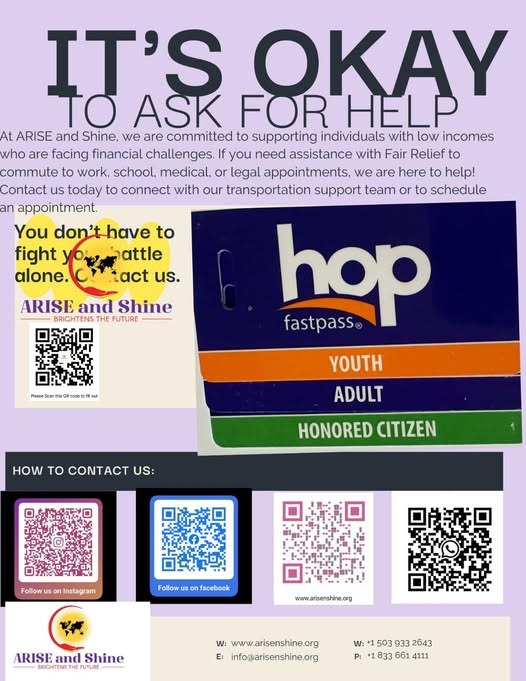 Phone8336614111 Location18901 E Burnside St OR Follow Us Home About Why Donate Who We Are What We Do Events Job Board Contact More Brightens The Future Newsletter Sign up to learn about our events be the first to get news Thanks for subscribing. What We Do Contact us 247 8336614111 A list of some of our programs Economic Development and Career Services Educational Empowerment Nutritional Support and Food Security Health and Wellness Family and Community Support Language and Integration Services Our Vision and Mission Vision Fostering a community where everyone shines with hope resilience and purpose Mission Building Bridges Transforming Lives Empowering Newcomers Uplifting Marginalized communities and Cultivating Youth Success. Learn About Us Arise Shine ARISE and Shine works to assist Immigrant and Refugee as well as other underserved communities Career Job Search and Preparedness Family Nurturing Services Housing and Stability Emotional Support Education Language Digital Literacy Services We strive to support Refugee and Immigrant youth in filling up the educational gaps and overcoming educational barriers due to linguistics limitations background education barriers cultural beliefs social circles and lack of motivation. Project Gallery Take a look at some of our recent projects.