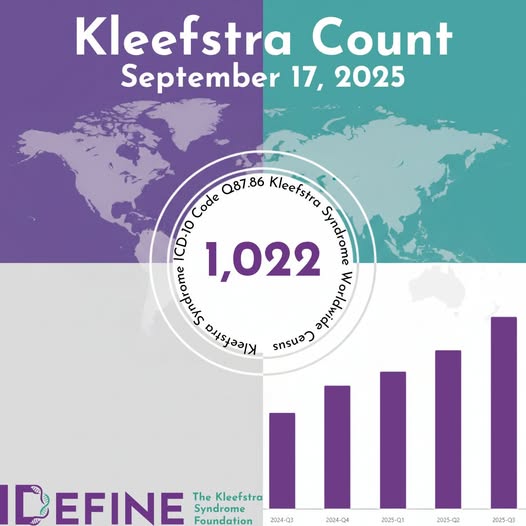💜Happy Kleefstra Syndrome Awareness Day!💜 We continue to celebrate our incredible community and the progress we've made together. We are so proud to announce a major milestone: our community has now registered over 1,000 patients on the worldwide map! This is a powerful testament to our growing strength and global unity. Key Accomplishments: 💜Hitting over 1,000 patients on the worldwide map! 💜Establishment of the Kleefstra Clinic at Boston Children's Hospital 💜Receiving our ICD-10 Code Q87.86 💜Building a thriving global community 💜Advancing down the research roadmap What's next? 🚀Developing additional centers of excellence for clinical care (both pediatric and adult!) 🚀Accelerating our mission towards a treatment 🚀Enhance community activations and fundraising to further our mission Join us in celebrating our strength and shared purpose. Thank you for being part of our movement! #KleefstraSyndrome #IDefine #RareDisease #KleefstraSyndromeAwarenessDay #1000PatientsStrong #CommunityStrong #HopeForACure (fb)