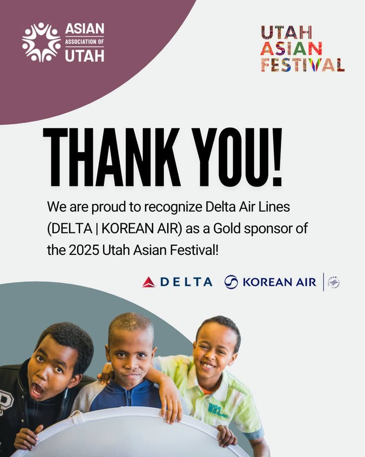 The Asian Association of Utah and Utah Asian Festival are proud to recognize Delta Air Lines - Delta | Korean Air as a gold sponsor for the 2025 Utah Asian Festival! (fb)