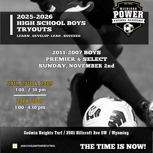 It's Game Day Saturday! Join us in supporting our athletes as they take to the field. Our MI Power 13/12 Coopersville team is eagerly anticipating their inaugural home match of the season. Let's demonstrate our team spirit! #Powerful #michiganpowerfutbolacademy #coopersvillemiddleschool (fb)