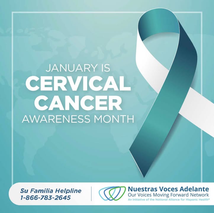 January is Cervical Cancer Awareness Month! Cervical cancer is highly preventable and highly curable if caught early. Nearly all cervical cancers can be prevented by HPV vaccination, routine cervical cancer screening (Pap and HPV test), and appropriate follow-up treatment when needed. Follow us for more information or visit https://www.cdc.gov/cervical-cancer/index.html #CancerNuestrasVoces (fb)