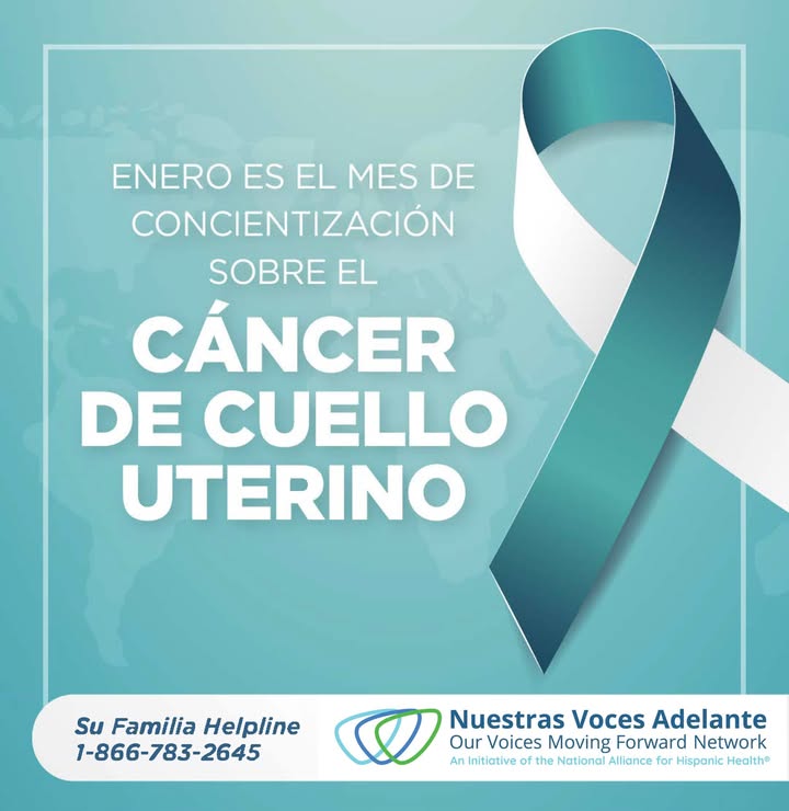 Enero es el mes de concientización sobre el cáncer de cuello uterino. Es posible prevenir el cáncer de cuello uterino y curarlo si se detecta temprano. Casi todos los cánceres de cuello uterino se pueden prevenir con la vacuna contra el virus del papiloma humano (VPH), pruebas de detección del cáncer de cuello uterino (Papanicolau y VPH), y con el tratamiento de seguimiento adecuado cuando es necesario. Para más información sobre el cáncer de cuello uterino, síganos o visite https://www.cdc.gov/cervical-cancer/es/index.html #CancerNuestrasVoces (fb)