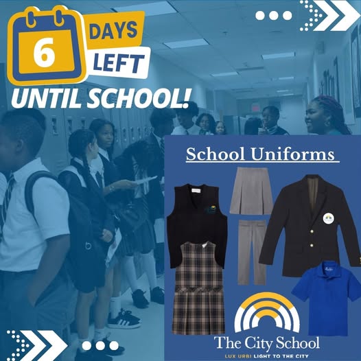 6 Days left until the first day of school! For info on school uniforms, visit https://cityschool.org/uniforms/ (fb)