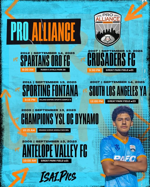 HOME ABOUT US TEAMS EVENTS CONTACT US More Join PAFC FUTBOL. COMMUNITY. PLACEMENT Founded in 2016 Pro Alliance Football Club is a vibrant youth football club located in La Puente CA. As active members of Cal South and US Soccer we compete in both the NPL and Coast Soccer League.