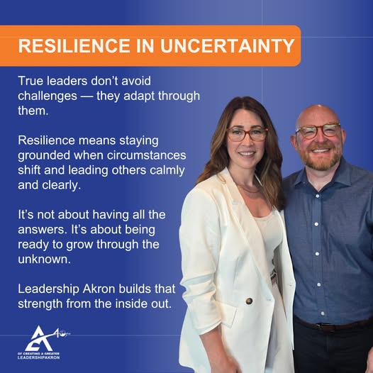 Resilience in Uncertainty True leaders don’t avoid challenges — they adapt through them. Resilience means staying grounded when circumstances shift and leading others calmly and clearly. It’s not about having all the answers. It’s about being ready to grow through the unknown. Leadership Akron builds that strength from the inside out. (fb)