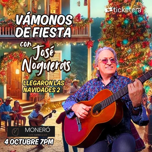 ¡El 4 de octubre inicia la Navidad! 🎄El cantante y compositor José Nogueras presenta su concierto “Vámonos de fiesta” para marcar el inicio de la época festiva. El gran parrandón se formará en el Moneró Café Teatro & Bar. ¡Busca ya tu boleto en Ticketera! ✨ (fb)
