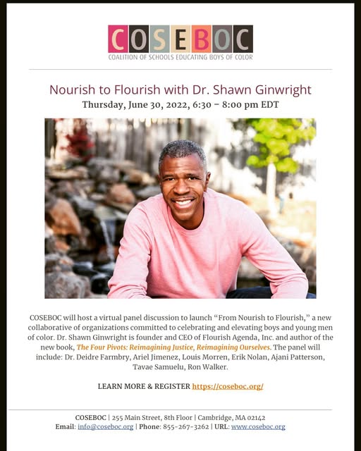 Looking to connect folx with our work? Dr. Ginwright will be headlining a wonderful virtual panel hosted by COSEBOC @coseboc on June 30! Link in our bio. Also, we missed y’all. How are we healing today? (fb)