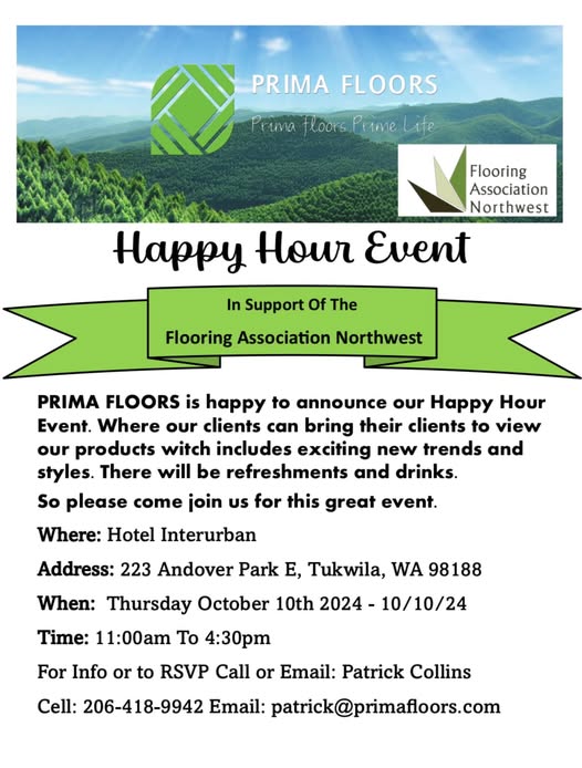 Join us on October 10th for a happy hour with Prima Floors at Hotel Interurban! (fb)