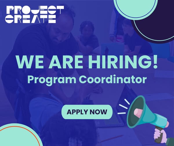 🚨 We’re hiring! Project Create is seeking a Part-Time Program Coordinator to support our Community Partnership Program! This hands-on role helps bring high-quality arts education to youth across DC by coordinating classes, supporting teaching artists, and managing program logistics. 💡 We’re looking for someone organized, dependable, and passionate about working in a youth-centered arts environment. Because this role requires significant local travel, reliable transportation is essential. 📅 Apply by September 26 — priority will be given to the first 100 applicants! 👉 Learn more + apply here: https://bit.ly/PCprogramjob #ProjectCreateDC #ArtsEducation #Hiring #Jobs #ProgramCoordinator (fb)
