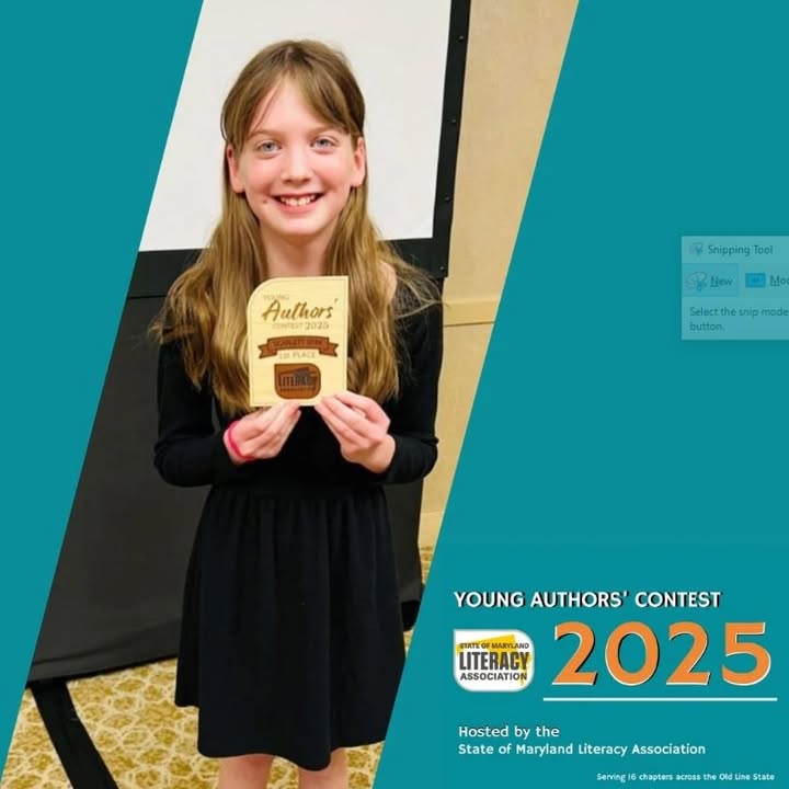 🎉 Congratulations to Scarlett Spak, fifth grader from Bayard Rustin Elementary School, for winning first place in the State of Maryland Literacy Association’s Young Authors’ Contest! Her historical fiction story about siblings escaping on the Underground Railroad began as a 4th-grade assignment—and is now published and recognized statewide. “I never knew my story could come this far,” said Scarlett. “I’m so proud and can’t wait to write more!” 📚✨Read more: https://mcpsmd.info/4dcMraA. (fb)