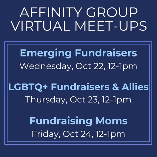 Looking to connect with peers who understand your fundraising journey? Our AFP Affinity Groups are the perfect way to build community, share experiences, and grow your network. This October, we’re excited to host: - Emerging Fundraisers - LGBTQ+ Fundraisers & Allies - Fundraising Moms All sessions are free, virtual, and open to attend—making it easier than ever to find your people in the industry. Don’t miss the chance to connect, learn, and be inspired. Learn more and register: https://community.afpnet.org/afpgaatlantachapter/events/recentcommunityeventsdashboard #AFPGreaterAtlanta #ProfessionalDevelopment #AFPAffinityGroup (fb)