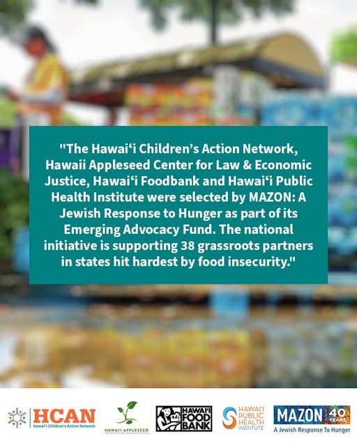 "The Hawaiʻi Children’s Action Network, Hawaii Appleseed Center for Law & Economic Justice, Hawaiʻi Foodbank and Hawaiʻi Public Health Institute were selected by MAZON: A Jewish Response to Hunger as part of its Emerging Advocacy Fund. The national initiative is supporting 38 grassroots partners in states hit hardest by food insecurity." Mahalo to our partners and our own Diane Tabangay for leading HCAN efforts in statewide summer feeding and expanding access to federal child nutrition programs! It takes a village! "According to the Food Research & Action Center, which issues an annual report comparing states’ summer nutrition programs, Hawaiʻi ranked 44th in the nation in 2019, with only 8.7% of students who get free or reduced-price lunch getting free summer food through the federal nutrition programs. In the group’s most recent report, covering 2023, the state had climbed to ninth, with 25.4% of free and reduced-priced keiki getting free summer nutrition." Read more here: https://www.staradvertiser.com/2025/09/06/hawaii-news/4-hawaii-nonprofits-receive-investments-as-snap-cuts-loom/ (fb)