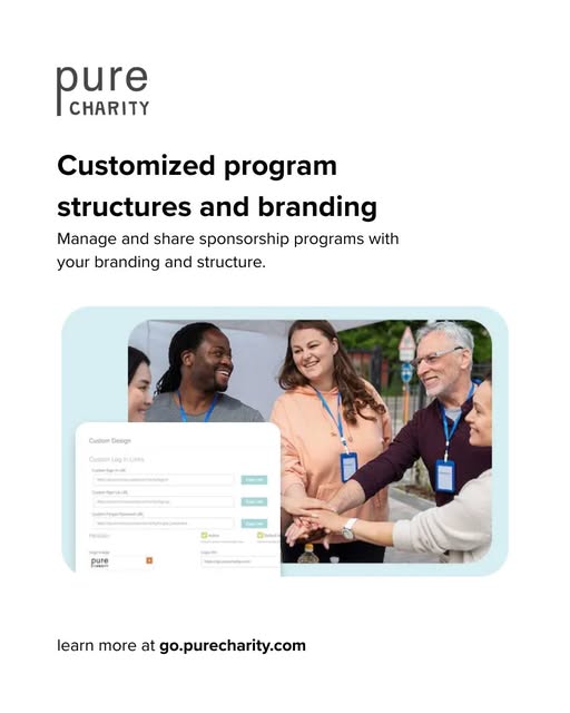 🎨 Customized Program Structures & Branding 🎨 Your donation and sponsorship program should look and feel like your mission. Pure Charity lets you design program structures, brand pages, and donor experiences that reflect your organization — not ours. Stand out, stay consistent, and build deeper trust with every sponsor. #purecharity #nonprofit #nonprofits #fundraising #donorlove #childsponsorship #nonprofitlife #dogood #socialimpact #makeadifference #nonprofitbranding #nonprofittech (fb)