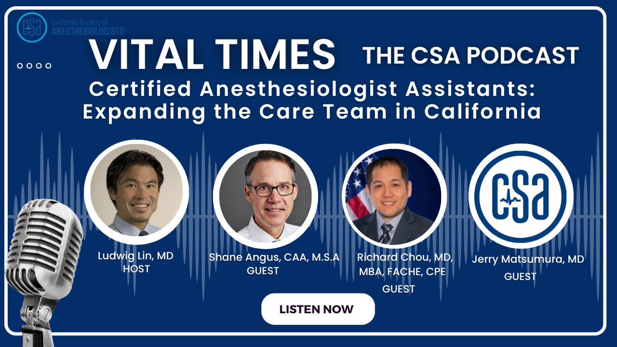 New episode out now! Certified Anesthesiologist Assistants: Expanding the Care Team in California. This convo aims to familiarize listeners with the CAA model, share key insights, and spark interest in this emerging aspect of anesthesiology care. https://t.co/CbvZwzJyNE. #caleg https://t.co/2b3FQwEZ5K (tw)