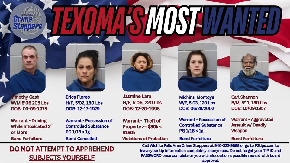 🚨 TEXOMA’S MOST WANTED – THE “ABSOLUTELY NOT” LINEUP These five said “law? never heard of her.” Let’s drag them back to reality. 👎 Timothy Cash – Wanted for DWI 3rd or More Timothy out here treating DUIs like they're punch cards. “One more and I get a free sub!” Sir, this is your third. You’re not a racecar driver, you're a red flag with a truck bed. Hang up the keys, turn yourself in, and maybe take up chess. 👎 Erica Flores – Wanted for Possession of Controlled Substance PG 1/1B <1g Erica, this isn’t Euphoria. Whatever you're doing, it’s not working — and the streets of Texoma are not your runway. Let’s get real: if your vibe requires controlled substances to function, your vibe is expired. Turn yourself in before your playlist hits "rock bottom." 👎 Jasmine Lara – Wanted for Theft of Property $30k–$150k Jasmine, stealing over $30k worth of stuff? That’s not even shoplifting, that’s Olympic-level looting. Who do you think you are — the Grinch?? You didn’t “borrow” it. You didn’t “accidentally walk out with it.” You committed a full-blown heist. Return the goods and go touch some grass. 👎 Michinsi Montoya – Wanted for Possession of Controlled Substance PG 1/1B <1g Michinsi. You’re not slick. This isn’t the 2000s and we’re not still pretending “it’s just a little something.” No. It’s tired, it’s played out, and your dealer is probably snitching as we speak. Come turn yourself in before your next move is live-streamed. 👎 Carl Shannon – Wanted for Aggravated Assault w/ Deadly Weapon Carl. Carl. Why are you like this? Aggravated assault with a deadly weapon? Over what? A Facebook comment? A gas station beef jerky mix-up? The only thing you should be assaulting is your lawn with a weed eater. Bring it in before someone calls you “Florida Man – Texoma Edition.” 🧠 Know where they are? Call (940) 322-9888 Tip at wfcrime.com Use the P3 Tips App (anonymous, like your burner Twitter) 💰 You can get paid if your tip leads to an arrest. Use it on fireworks, funnel cake, or finally replacing your ex’s hoodie. 👉 SHARE THIS POST. And tag these wanted fools too. Y’all know Crime Stoppers ain’t afraid of the comments. #TexomasMostWanted #WFCrimeStoppers #TurnYourselfInChallenge #JailIsHotterThisSummer #SnitchForSnacks #RespectfullyNo (fb)