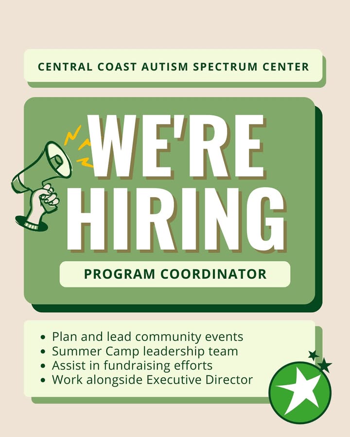 This is a part-time position with a small passionate team! Come help make a difference in the lives of individuals with autism and their families. Send resume to cspears@sloautism.org. Accepting applications through June 9, 2025. Help us build a more inclusive Central Coast, one program at a time! 💚 (fb)