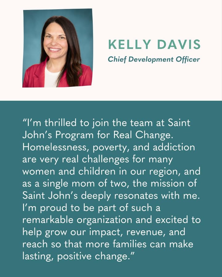 We’re thrilled to welcome Kelly Davis as our new Chief Development Officer at Saint John’s Program for Real Change! Kelly will lead our fundraising strategy, major gifts program, and donor engagement, helping ensure we can continue creating real, lasting change for the women and children we serve. A Sacramento native, Kelly brings a wealth of experience from CalMatters, March of Dimes, and the Girl Scouts. She’s excited to connect with our incredible community partners and donors who make this life-changing work possible. Please join us in giving her a warm Saint John’s welcome! #RealChange #WelcomeKelly #WomenAndChildrenFirst #SaintJohnsProgram #LeadershipSpotlight (fb)