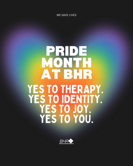 During Pride — and every day — we’re holding space for healing, celebrating the full spectrum of who we are, and affirming that mental health matters in every community. You don’t have to choose between being proud and being honest about your struggles. You’re allowed to be all of it. Loudly. Softly. Fully. #WESAVELIVES #BePresent #StartWithIntention #BHRSTRONG #Selfcare #HealthandWellness #BHR #Peace (fb)