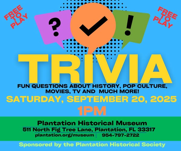 The Plantation Historical Society, Inc., is organized to assist the Plantation Historical Museum in its mission to preserve and protect the historical and archeological heritage of Plantation and South Florida by focusing on the Museum.