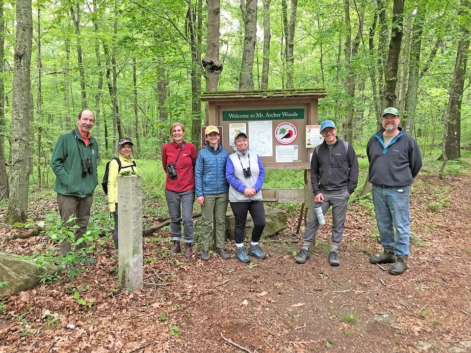 A chorus of birdsong, including those of Scarlet Tanager, Wood Thrush, Eastern Towhee, Ovenbird, and Veery, greeted a group of us on May 24, 2025 on a tour of the Town-owned Mt Archer Woods in Lyme with Audubon Forester Rosa Goldman. She pointed out why the Sugarbush in the preserve, the part of the forest that Fat Stone Farm leases to carry out the traditional practice of harvesting organic maple sap, has been recognized by the Audubon Bird-Friendly Maple Program. The program acknowledges current management of the forest that supports birds and also provides guidance to maintain and enhance bird habitat. Bird-friendly maple forest management activities include: -Maintain a diversity of tree species (more than just maple) -Keep standing dead trees and live trees with cavities (the bigger the better) -Layers of vegetation, from small seedlings on the forest floor, to saplings and shrubs, to the canopy overhead. -Leave logs and branches on the forest floor Every year, millions of birds breed, feed and fledge in the same forests that are tapped for syrup. -Control of invasive species. (fb)