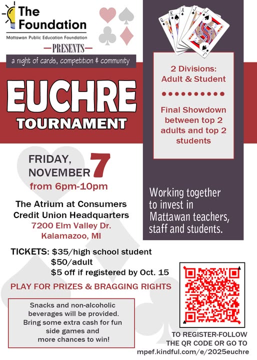 Last day to SAVE! Early Bird Pricing ends today, so be sure to grab your tickets for this awesome fundraiser event while the deal still lasts: https://mpef.kindful.com/e/2025euchre (fb)