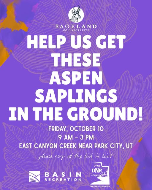 Touch grass? Nah. Touch DIRT. 🤎 Join us on Friday, October 10th from 9am-3pm to plant willows, flowering plants, and potted aspen trees at a Riverscape Restoration project site along East Canyon Creek near Park City, Utah with our partners at @basinrecreation. These plants will provide valuable shelter and forage for a variety of wildlife that utilize riparian (stream side) habitats. This volunteer opportunity is a fun and safe way to make a difference in nature, connect with local communities, and learn more about Utah’s unique ecosystems. 🦫 Spots are limited — secure your spot at the link in our bio today! (fb)