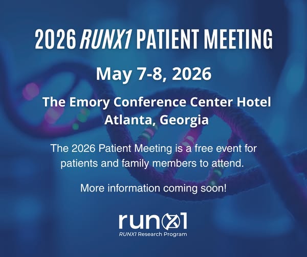 Join us for the 2026 RUNX1 Patient Meeting in Atlanta, GA! May 7–8, 2026 | Emory Conference Center Hotel We’re excited to bring together individuals and families affected by RUNX1-FPD for in-person discussions, learning, and connection. As we plan next year’s meeting, we’re exploring the possibility of offering special sessions or activities for children and teens. If you’re a parent or guardian, please register and complete the short questionnaire on the form as soon as possible so we can plan accordingly. Your early response could help us shape meaningful sessions for young attendees. Register today: https://runx1researchprogram.org/fb2026PatientMeeting (fb)