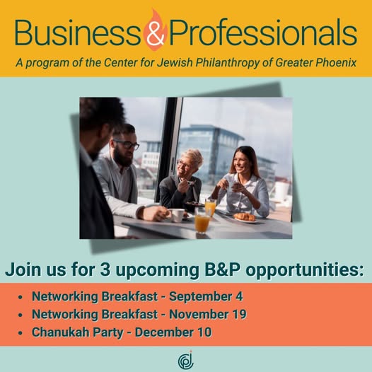 The Business & Professionals group is back and stronger than ever! This fall, we’re kicking things off with three exciting opportunities to connect, network, and grow within our vibrant Jewish professional community: 📅 Networking Breakfast – September 4 📅 Networking Breakfast – November 19 🕎 Chanukah Party – December 12 Whether you're looking to expand your network, build partnerships, or just meet great people, we’d love to see you there. 🔗 9/4 registration: https://ow.ly/aXx750WxG1I 📣 Join the Business & Professionals Facebook group for the latest updates! 👉 Other reg links to come! #JewishPhoenix #BusinessAndProfessionals #NetworkingEvents #JewishCommunity #ProfessionalGrowth (fb)
