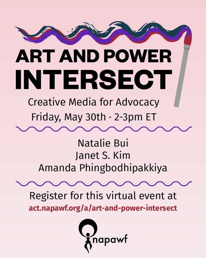 To close out APAHM, join us next week with an incredible lineup of AAPI artists as we reflect on the use of diverse media to empower our communities and inspire acts of resistance, throughout history and today! RSVP for this virtual event at act.napawf.org/a/art-and-power-intersect (fb)
