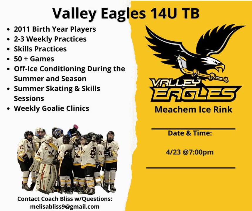 Join us for an additional 14U TB tryout! Register here: https://www.valleyyouthhockey.com/program/youth-girls-travel/18543 (fb)
